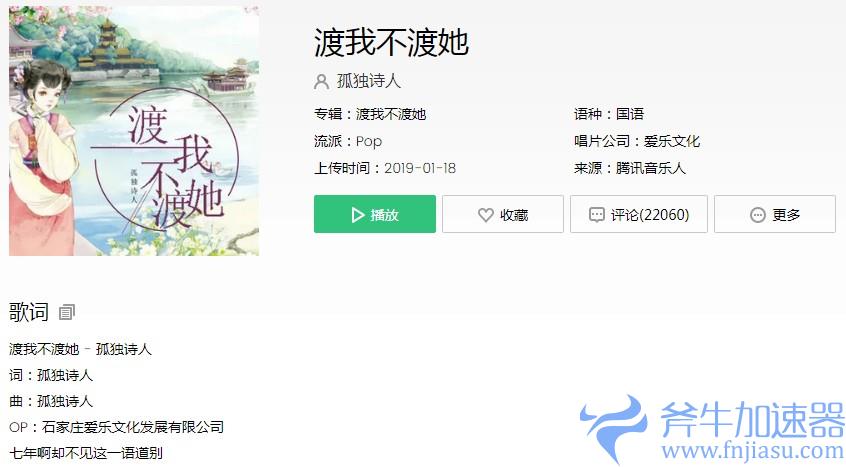 这首歌是由孤独诗人演唱的《渡我不渡她》