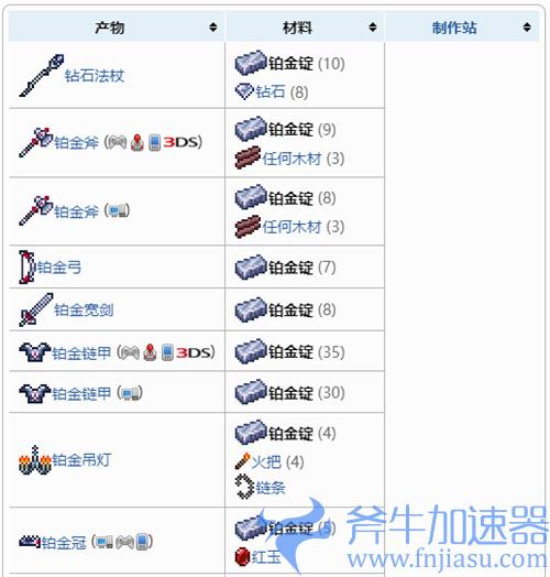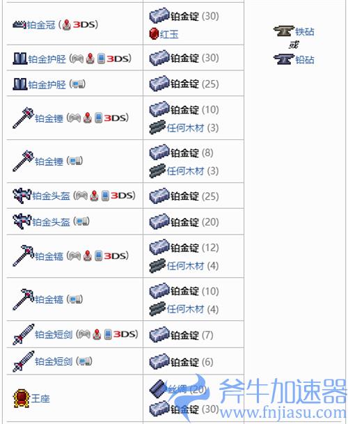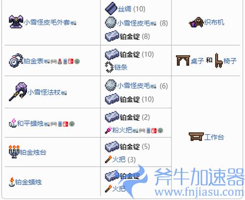 泰拉瑞亚1.4铂金锭合成物汇总图