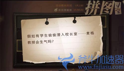 综上所述,线索“假如有学生偷偷潜入校长室……麦格教授会生气吗?”对应的地方就是【校长室】,玩家进入校长室后,点击校长的办公桌,即可获得本线索所对应的拼图碎片!