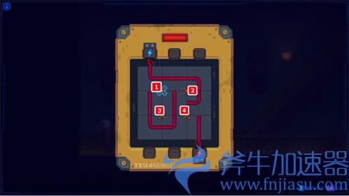 4、进去配电小游戏,需要让两个点口通过电路链接,我们给每个按钮标记了数字,解谜顺序按【4转一次,3转一次,4转一次】,完成小游戏。