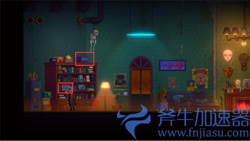 14、前往一楼调查架子顶部的AED盒子,发现处理器在上面,但是我们够不到。与沙发上的威廉对话,让它帮我们拿下来。选择【带你出去遛弯】作为报酬,它就会帮我们把东西弄下来。