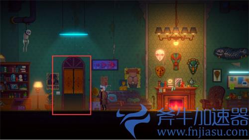 12、 来到二楼的卧室,厕所门右边就是密码纸背面图案的画。