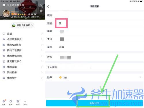 2、【详细资料】-【性别】,QQ性别修改之后,游戏内的性别也随之更换;