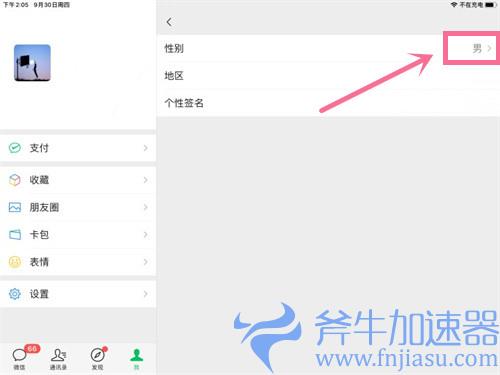 2、选中【性别】一栏,在微信性别修改之后,游戏内的性别也随之更换。