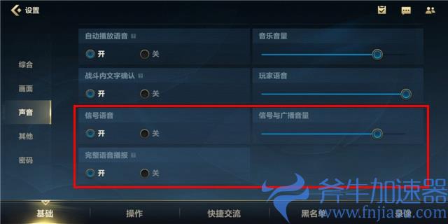 3、找到【信号语音】,【信号与广播音量】,【完整语音播报】三个选项,自行设置为自己需要的即可。
