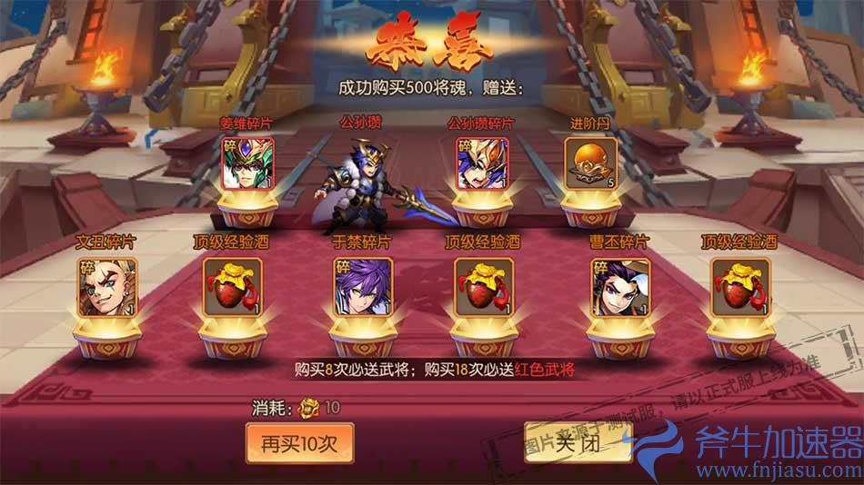 来来来,深吸一口气,跟着小编一起十连!红将来吧!嘿嘿,是好用的武将公孙瓒!还获得了一大堆碎片,不亏!