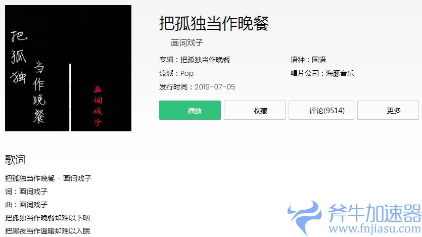 这首歌是由画词戏子演唱的《把孤独当作晚餐》