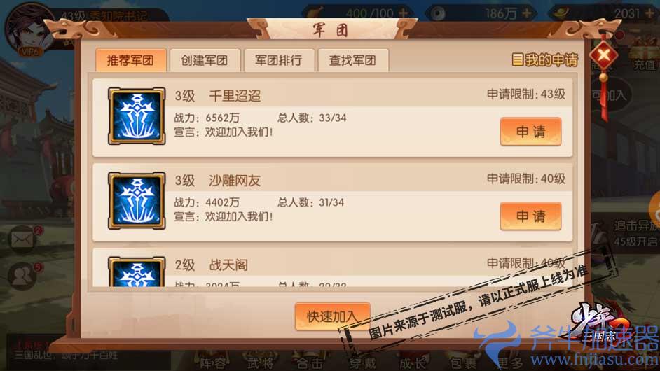 少年三国志2军团系统介绍