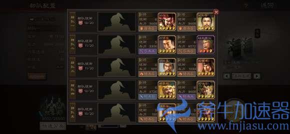 2、在NPC城池里征兵是要铜币的,相当不划算。咱们可以在自己城里补兵!只要我们主将是空的,他就打不到我们的部队!具体操作就是把主将扔到第四第五队去占着副将位置,所有部队都不要设置主将!