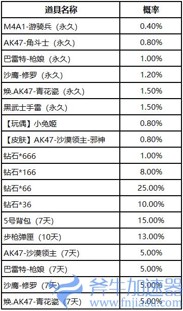 CF手游元旦扭蛋机概率