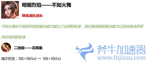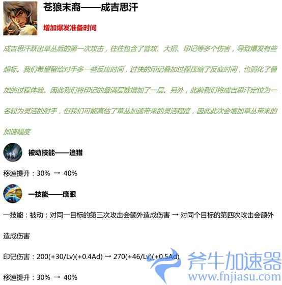 每次普攻击对敌人造成10%减速,最多叠加两层,持续2秒,并附带2段灼烧效果,每段造成20~48点伤害 → 每次普攻击对敌人造成15%减速,最多叠加两层,持续2秒,并附带2段灼烧效果,每段造成30~128点真实伤害,伤害效果对野怪会强化为60~256点