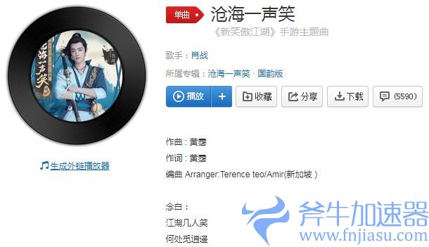 《沧海一声笑》歌词介绍