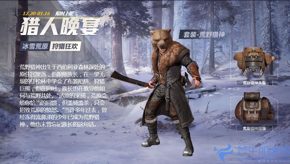 荒野猎神可以在12月20日上架的猎人晚宴军需中开出。需要注意的是猎人晚宴军需是限时军需,上架时间为12月20日至1月16日。