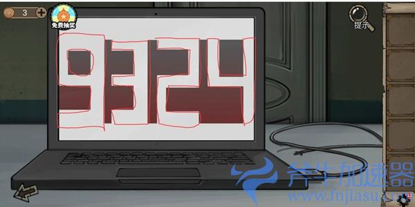 椅子上拿到布 视力表擦干净 记好顺序上下左左右上 笔记本通上电源 开小键盘输入824468(就是上下左左右上) 拿到密码 9324