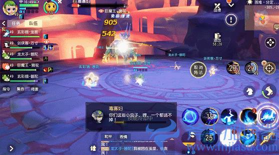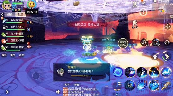 2、毒寡妇BOSS掉下来后,所有玩家一起集火攻击BOSS,要注意毒寡妇的攻击技能,要不断走位躲避,奶妈需要看准队友血线及时加血。