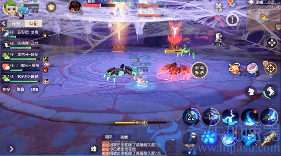 注意:BOSS落地后不再刷新小蜘蛛,且会造成一次群体伤害,无法躲避,奶妈注意时机释放群体治疗技能,以维持团队血量稳定。