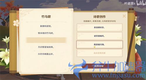 原神竹马歌,是2.6版本大活动堇庭华彩中月章星句的第二个任务,玩家需要搜集稻妻独特的动物来获得灵感,补充完善竹马歌,那么就有玩家会问:原神竹马歌该选哪一句呢?本期小编就来回答这个问题,有疑惑的小伙伴一起来看看吧!