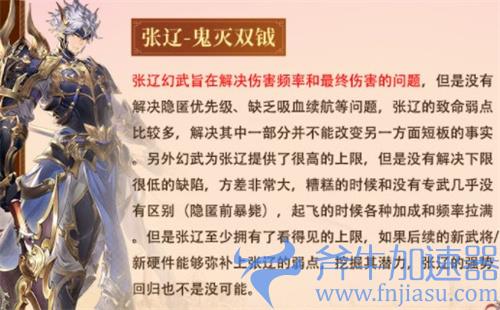 张辽幻武名为“鬼灭双钺”,主要是弥补张辽伤害不足的问题。