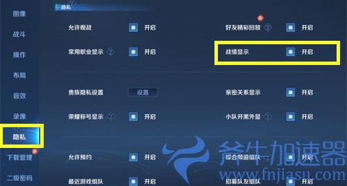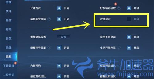 第三步:找到右上角的“战绩显示”,取消其勾选状态。