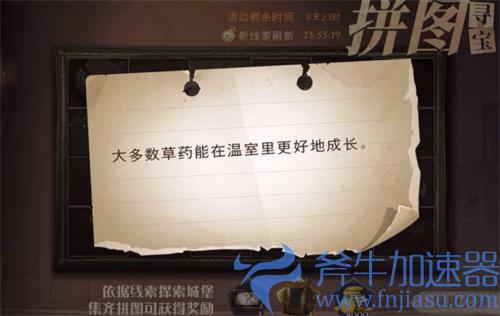大多数草药能在温室里更好地成长。语出自11月8号哈利波特魔法觉醒的拼图寻宝活动第五期的第6天里的一条线索。很多小伙伴表示不知道这条线索对应的地方在哪,对于获取拼图碎片也就无从下手。那么本条线索对应的拼图在哪里呢?今天小编就来回答这个问题!