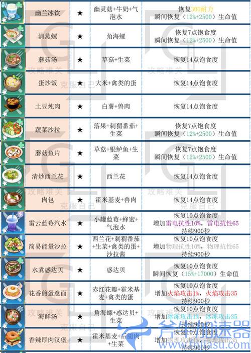 原神食谱大全2020 原神食谱详细材料功效作用介绍,斧牛免费手游加速器稳定不掉线