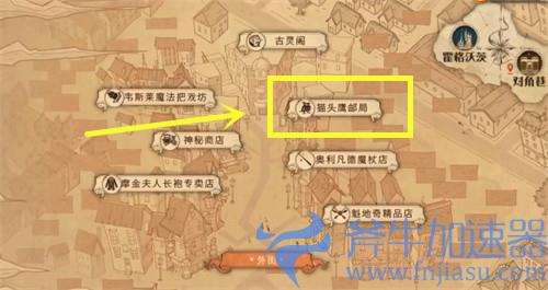 1、点击右上角世界地图,切换到【对角巷】,选择【猫头鹰邮局】进入;