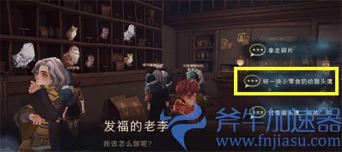 综上所述,线索“刚刚皮皮鬼穿过这里,学猫头鹰“咕咕”直叫。我猜那是他对下一片碎片给出的线索”对应的地方就是对角巷的【猫头鹰邮局】,玩家进入邮局后,视角向左转,点击左侧陈列柜上一只亮着金色拼图标志的猫头鹰,选择第二项即可获得拼图碎片!
