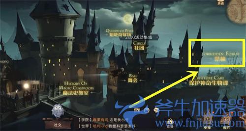 1、点击右上角世界地图,切换到【霍格沃兹】,选择【城堡上空】;