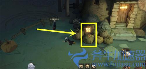 3、在海格小屋门口,可以看到一堆南瓜,点击金色拼图标志;