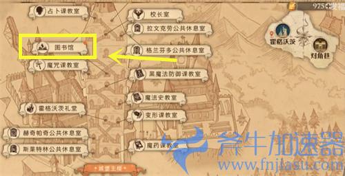 1、点击右上角世界地图,切换到【霍格沃兹】,将地图放到最大,选择【图书馆】进入;