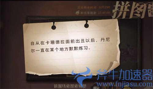 自从在卡珊德拉面前出丑以后,丹尼尔一直在某个地方默默练习!这是一条线索,语出自哈利波特魔法觉醒的拼图寻宝活动第三期的第二天,也就是10月7号。这个活动需要玩家根据线索来找到分布在地图各个角落的拼图碎片,集齐一整拼图即可兑换奖励,那么本条线索对应的拼图在哪里呢?今天小编就来回答这个问题!