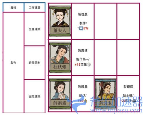 在江南百景图中,制作是关系到游戏发展中最重要的任务,无论是农牧还是建造都是在为制作生产铺路。在游戏中,制作属性越高,制作时间越短。那么在众多人物之中,我们究竟派什么人物去生产制作呢?本期小编就为大家答疑解惑,感兴趣的小伙伴一起来看看吧!