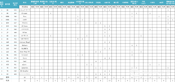 统计370场次,共计吃鸡场次96场。其中吃鸡场次最高的阵容为6源计划阵容共为36场次,占比约37.5%。 吃鸡场次第二阵容宇航狙阵容共为21场次,占比约21.86%。吃鸡场次第三阵容为重装4秘/2秘2法阵容共13场次,占比约14.5%。