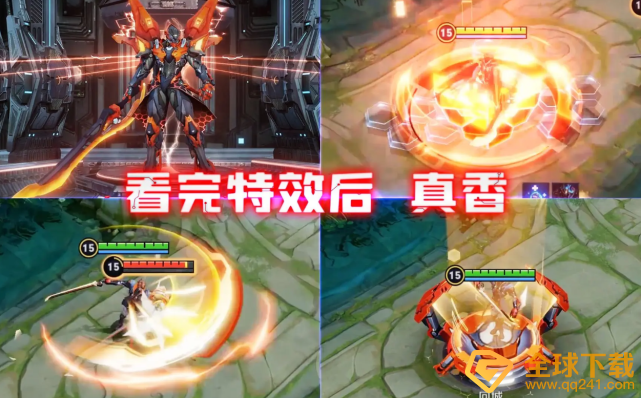 这款皮肤的特效也主要是和这款皮肤的色调一致,也是橙色的色调,还有暗红色和黄色作为辅助色,