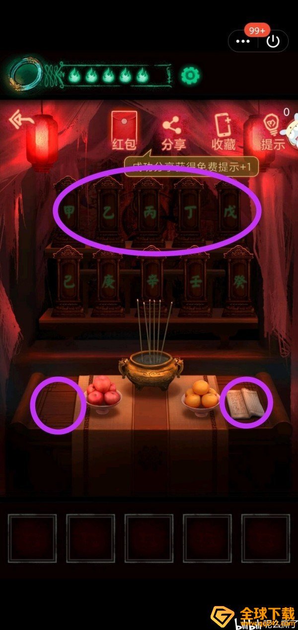 前往寺庙,根据石碑与书本提示,摆放好五个道具。