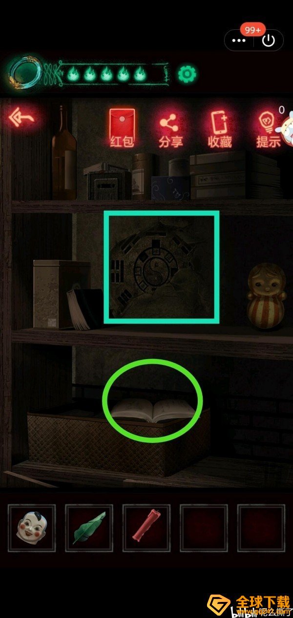 翻看绿圈书籍得到道具与提示。蓝圈后续线索开启。