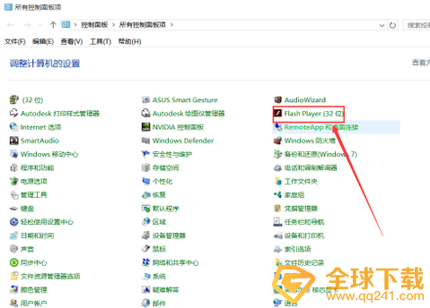 1、我们需要先前往电脑的控制面板,然后找到Flash Player并点击进入,如图所示。