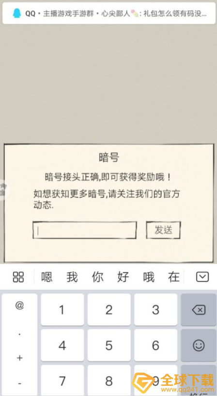 接着在“暗号”界面这里,我们选择发送,就可以获得奖励了。